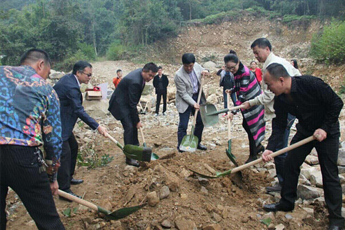 周致敏夫妇等在开工奠基仪式上挥锹铲土