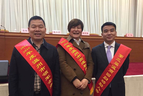 乐清市侨商会副会长、五洲国际(乐清)电工电气城有限公司执行董事吴晓锋荣获第三届“温商回归功勋人物”称号,乐清市侨商会副会长、浙江佳博科技股份有限公司董事长薛子夜荣获2015-2016年度“温州市高成长型企业”称号。(朱凯震)