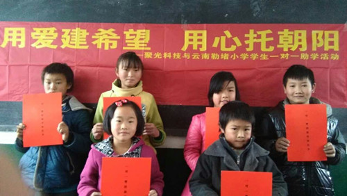 继去年侨企聚光科技(杭州)有限公司圆了云南省彝良县荞山镇咪咡村勒堵小学 165名学生新衣梦和校服梦后,近日再次与勒堵小学牵手,捐助学校改善体育设施,对6名贫困学生进行一对一扶助。