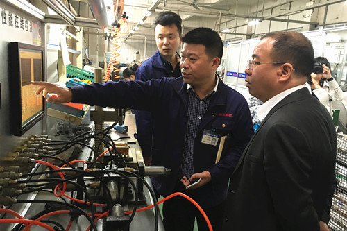 朱玉贵副主任一行在瑞立集团有限公司参观了公司厂房、生产车间和产品展示厅,并听取了公司负责人对产品及企业发展历程的介绍。朱玉贵副主任对瑞立集团近几年经营发展所取得的成就表示肯定,并鼓励瑞立集团继续发挥瑞安侨企带头作用,赶超发展。