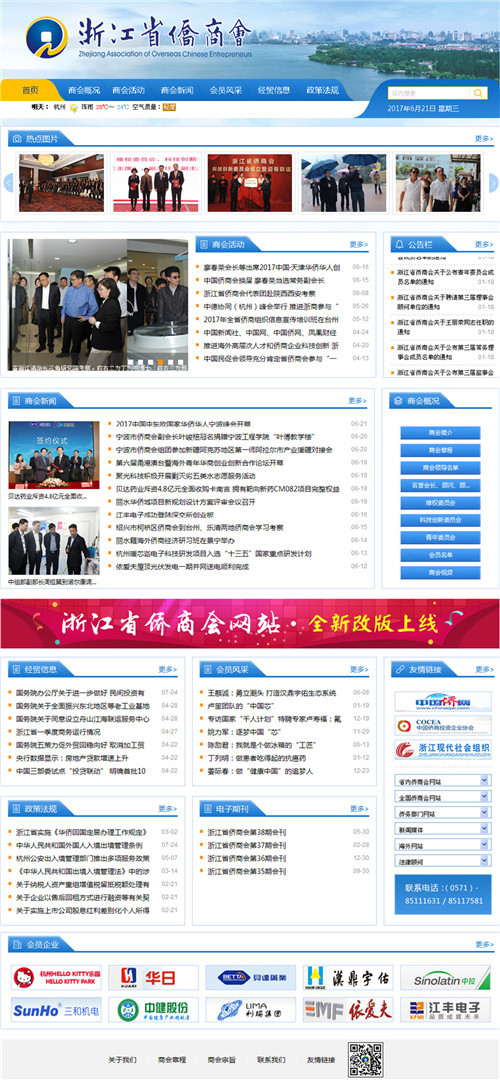 为适应新媒体发展形势,结合商会发展需求,在廖春荣会长的重视和关心下,浙江省侨商会官网已成功改版升级并于6月21日正式上线运行。