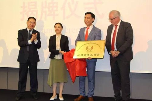 朱军副厅长作为家乡人,对于德国浙江总商会的成立致以最诚挚的祝贺。他祝愿,在郑旭涵会长的带领下,总商会会务蒸蒸日上,秉持爱国精神,充分发挥好中德间桥梁作用。他也希望旅德浙江籍侨胞更多参与国内建设,投身到“浙商回归”的大潮里去。