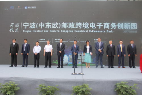 近日,位于慈溪龙山镇滨海经济开发区的宁波中东欧邮政跨境电商创新园正式开园。宁波市政协副主席郁伟年、慈溪市委书记高庆丰、宁波市侨办主任顾正为及中东欧各国侨领代表等领导与嘉宾参加了开园仪式。