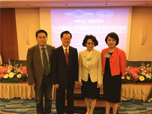 在中德商务与投资高峰论坛上,杭州市副市长谢双成、汉堡市国务秘书波辛根、中国驻汉堡总领馆总领事孙从彬出席并致辞。德国经济参议会副主席格德·布鲁德和杭州市侨商会会长、浙江华日集团公司董事长陈励君分别作了以“创新与联动”和“为我们共同的家园而努力”为主题的主旨演讲,受到与会代表的热烈赞赏。会上还就杭州德欧中小企业中心项目,杭州中德大健康合作项目进行了签约。