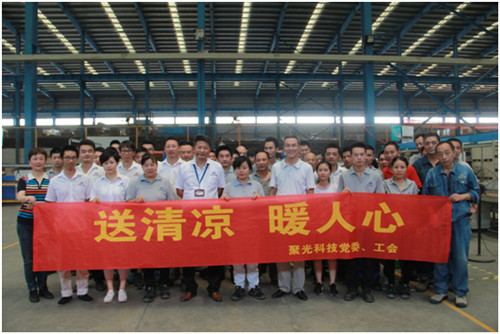 酷暑考验着坚守在工作一线的广大职工,更牵动着公司领导们的心。7月27日至28日,公司党委书记、工会主席陈荧平和工会副主席王鲁平分别来到闻堰成品仓、聚光科技园、钣金厂、清本环保和鑫佰利生产车间,看望慰问生产一线的员工。每到一处,陈荧平都仔细查看工作环境,详细了解防暑工作,亲切询问作息时间和身体状况,对大家高温下坚守岗位、辛勤劳动的精神表示感谢。同时陈荧平叮嘱各部门负责人要关注现场人员的身体状况和加强防暑降温工作,更科学、更合理地安排好作息时间,应对高温天气,确保一线员工的身体健康。随后,还为一线员工们送上肥皂、花露水、洗衣服和饮料等物品。(陈鲜丽)