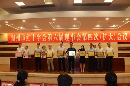 为大力弘扬人道、博爱、奉献的红十字精神,树立引领红十字事业发展的先进典型。7月28日,温州市红十字会六届四次理事会授予一批为红十字事业作出贡献的企业(单位)和个人为“温州市红十字博爱功勋奖”。浙江钱仓进出口贸易有限公司、浙江威信纺织有限公司、瑞安市撒丁岛进出口贸易有限公司、浙江跃进机械有限公司等4家瑞安侨企荣获单位组铜奖;郑品海、董邦云等2位瑞籍侨领荣获个人组金奖;朱良仕等10位瑞籍侨领荣获个人组银奖;程志骇等28位瑞籍侨领荣获个人组铜奖。