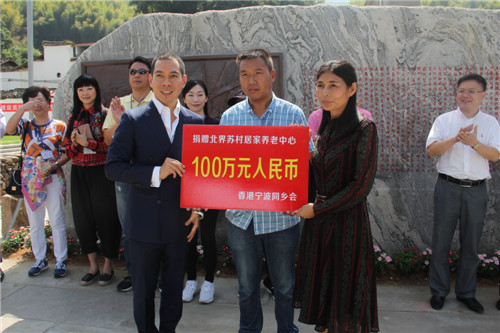 10月8日,香港宁波同乡会会长李本俊带领代表团一行20余人来到遂昌苏村,参加由该会资助100万元改建的居家养老中心捐赠仪式。宁波市委统战部副部长胡学健、宁波市侨办副主任赵骏,丽水市委统战部常务副部长李邦生、丽水市外侨办主任邢长勇,遂昌县委常委、统战部长周立民等共同见证了这一具有纪念意义的时刻。