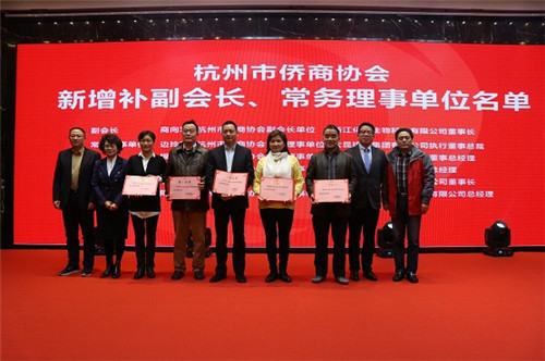 会议通过了增补商向军为市侨商会副会长、潘德明等5人为常务理事的决定。市外侨办主任董祖德、副主任祝平,市侨商会会长陈励君、监事长方杰为新增补的副会长、常务理事颁发了证书。(杭州市侨商会)