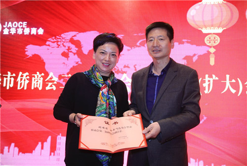 吴超英会长在会上做了2017年市侨商会工作报告。她说,2017年是市侨商会换届后的开局之年,市侨商会以党的十九大精神为指导,在市委、市政府的重视关怀下,在市外侨办和省侨商会的有力指导下,围绕中心汇聚侨力,服务大局服务侨商,各项工作都有了新的突破。一是组织换届,商会自身建设有力加强。2017年,市侨商会成功召开金华市侨商会第二届会员代表大会,侨商队伍不断壮大,制度规章不断完善,精神生活不断充实,成立了维权委员会。市侨商会党支部和青年委员会的组建工作也正在有序进行,进一步增强了侨商会的凝聚力和战斗力。二是围绕中心,服务大局意识明显增强。市侨商会发挥所长服务所需,积极参与服务金华的经济社会建设。在市外侨办的直接指导下,助力金华与法国夏斗湖市缔结友好城市,促进两地经贸合作与发展。多次组织召开“金华产品走向世界”海外仓模式研讨会,助力海外仓建设。组织侨商参与“一带一路”建设作出新贡献。三是心系会员,为侨服务能力不断提升。广泛开展“走访侨商·服务侨企”活动,对于会员企业遇到的难题、纠纷或涉法问题,都能及时会同维权委员会成员,帮助企业会诊把脉、分析对策,提出解决的方案,做到会员有求商会必应。努力为会员企业提供信息合作发展服务平台,广泛开展“银企合作·互惠共赢”交流活动,为企业提供实质性、全方位的服务。四是加强联系,联络交流渠道快速延伸。加强了与国内商会团体、来金访问考察的海外侨商侨领、海外商会侨团之间的联系交流。五是注重宣传,侨商侨企影响逐渐扩大。加强信息宣传员队伍和机制建设,及时发现挖掘侨商侨企的先进事迹和经验做法予以报道,进一步加大与上级侨务部门和地方媒体的联系交流力度。她表示, 2018年,是全面贯彻党的十九大精神的开局之年,是我国改革开放40周年,也是我市实施“五大战略”、聚力“三条廊道”、合力打造都市区“同心圆”的关键一年。在新的历史起点上,我们一定要深入学习全面贯彻党的十九大精神,高举习近平新时代中国特色社会主义思想的伟大旗帜,按照市委、市政府的决策部署和总体要求,启航新的征程,建功新的时代,力争在服务大局上谋求新作为,在为侨服务上力求新成效,在海外联谊上探求新突破,在自身建设上寻求新亮点,充分发挥侨商组织和侨商的独特优势,在团结广大侨商为金华经济社会发展服务上发挥更多更好的作用,以崭新的精神状态和高昂的奋斗姿态,全力打造联谊服务合作发展的一流商会,为金华的现代化都市区建设作出新的更大的贡献。