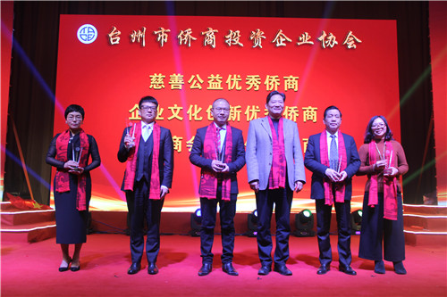 联谊会上,台州市领导为近年来有突出成绩的12家优秀侨商企业颁发“科技创新”、“创业创新”、“发展进步”奖,为11位优秀侨商颁发“海外创业”、“返乡投资创业”、“促进“一带一路”建设”、“慈善公益”、“企业文化创新”、“热心商会工作”奖。