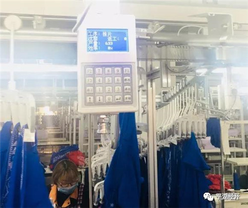 衣服生产环节,检验是最后一道工序。有了这条自动吊挂流水线,一旦发现制作不够完美的衣服,负责检验工序的工人只需在操作屏上轻轻一点,就可快速锁定工序负责人,衣服就会随着这条吊挂流水线“滑回”至相应的工序负责人处,第一时间进行返工弥补。