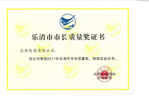 近日,在乐清市人民政府发布的《乐政发(2018)2号》文件中,乐清市侨商会常务副会长单位巨邦集团有限公司荣获2017年乐清市市长质量奖。