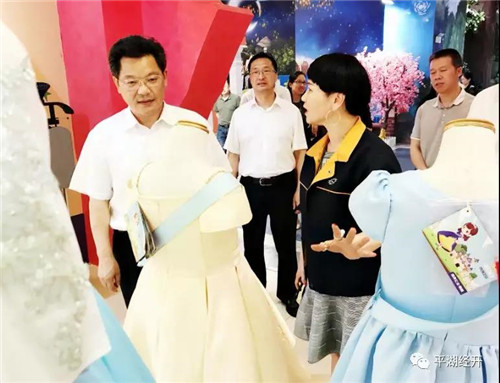 任振鹤一行实地走访了区内浙江依爱夫游戏装文化产业有限公司,现场参观了伊佳林开心梦工场、游戏装文化馆和道德模范工作室等场所,对企业生产经营情况以及党建、廉政等工作开展情况进行了详细了解。