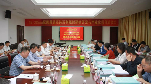“45-28nm配线用超高纯系列溅射靶材开发与产业化”项目,由江丰电子牵头承担,成员单位包括北京有色金属研究总院、金川集团股份有限公司、宁夏东方钽业股份有限公司、上海新阳半导体材料股份有限公司、复旦大学、重庆大学、南京工业大学等知名企业和高校,形成了产学研用联盟,是国家“十二五”期间集成电路产业发展的重要部署。项目面向45-28 nm极大规模集成电路用300mm硅片工艺制备技术需求,突破了一系列关键技术瓶颈,建成了超高纯金属原料和溅射靶材生产线,产品在中芯国际、台积电、格罗方德等国内外一流半导体厂商实现量产,圆满完成了项目任务。