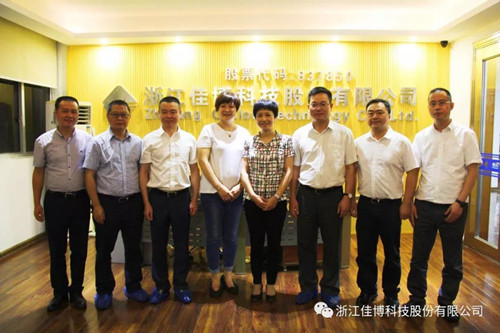 近日,省科技厅党组书记何杏仁一行到浙江佳博科技股份有限公司调研考察。乐清市人民政府副市长吴呈钱、乐清市经济开发区管委会主任郑巨化等陪同考察。