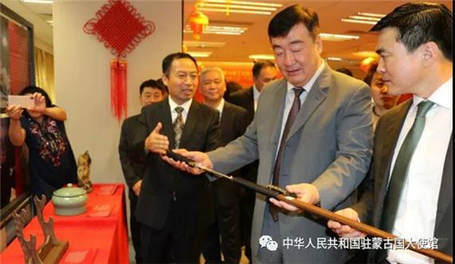 “一带一路”中国工艺美术精品全球展——第一站:“丽水三宝”专家作品走进蒙古国活动由丽水市人民政府和蒙古首都公民会议共同主办,蒙古国中国文化中心承办,旨在积极响应习近平主席提出的“一带一路”倡议,以传承千余年的“丽水三宝”——龙泉青瓷、龙泉宝剑、青田石雕为载体,借助传统工艺美术文化,促进中蒙两国文化交流,推动两国工美文化产业融合发展。(转载自微信公众号中华人民共和国驻蒙古国大使馆)