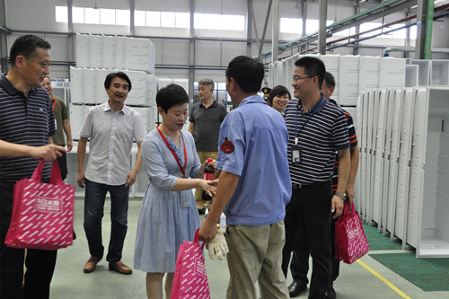慰问团一行到冰箱制造主厂房问候一线操作工,给华日员工送来夏日的清凉和问候,了解员工们的工作生活情况,叮咛他们做好防暑降温,注意休息。同时对华日公司党委、工会的防暑降温工作给予充分肯定,勉励大家继续做好工作,坚守实业,为地方经济发展作出应有的贡献,员工们很受鼓舞。