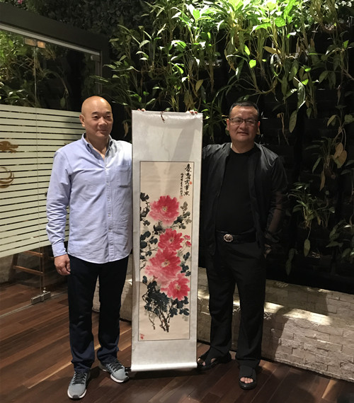 徐旭昶会长送上亲自绘制的牡丹图