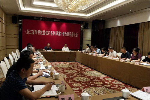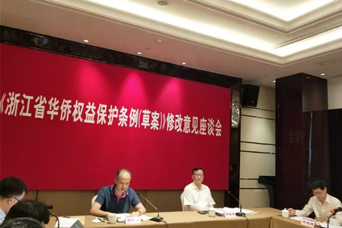 8月17日,《浙江省华侨权益保护条例(草案)》修改征求意见座谈会在杭州新侨饭店召开,省人大民族宗教华侨外事委员会副主任、省侨联党组书记岑国荣出席座谈会并讲话。会议由省侨联党组成员、秘书长周松一主持,省侨联法顾委律师、各市侨联分管领导和维权干部共30人余参加。