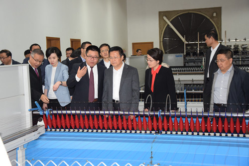 考察团一行先后参观了粗纺纱线和花式纱线生产车间,听取了薛惊理董事长关于集团发展现状、战略规划以及“智能工厂”、“江南织造府”等重点项目的建设情况介绍。
