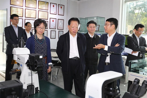 公司领导陪同杨戌标主席一行参观了公司产品展示厅、新厂房沙盘和国家重点研发计划重点专项《高分辨荧光显微成像仪》样机展示厅,并介绍了公司科技创新成果、产品和市场等情况及新厂房建设进展和企业未来发展规划。