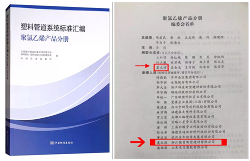 近日,在全国塑料制品标准化技术委员会和塑料管材管件及阀门分技术委员会的指导下,乐清侨企德首控股集团有限公司与国内知名管道企业、业内专家共同参与编撰的行业标准《塑料管道系统标准汇编(聚氯乙烯产品分册)》正式出版发行。