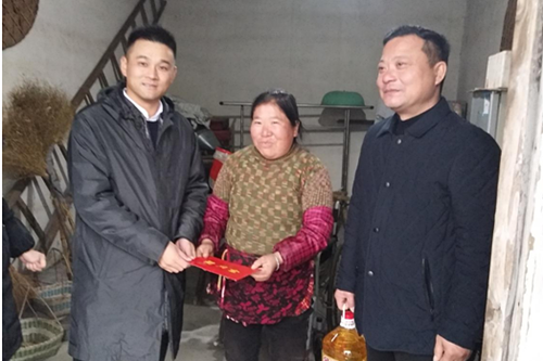 顺利村位于柯桥区稽东镇南部山区,因地处偏远,资源匮乏,村级经济十分薄弱,全村300多户人家有20多户低保及低保边缘户,大部分家庭都因有家人病残而致贫。吴建栋等首先来到村民安大伯家,安大伯年老体弱,身患多种疾病,仅靠扫地谋生的媳妇照顾,生活十分困难。吴建栋详细询问了安大伯的家庭情况和生活状况,向他送上现金红包和慰问品,安慰老人安心生活,安度晚年。