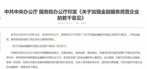 2月14日晚间,新华社发布消息称,近日,中共中央办公厅、国务院办公厅印发了《关于加强金融服务民营企业的若干意见》,并发出通知,要求各地区各部门结合实际认真贯彻落实。