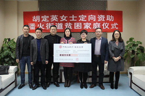 据悉,此次胡定英女士向鄞州区慈善总会捐款100万元人民币设立“华信投资定向救助资金”,专门用于扶助潘火街道的贫困家庭。