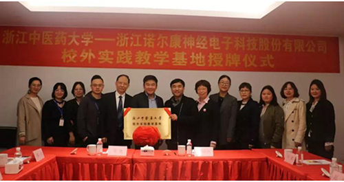 最近,浙江中医药大学与侨企浙江诺尔康神经电子科技股份有限公司“校外实践教学基地授牌仪式”在诺尔康海创园生产基地举行。诺尔康正式成为浙江中医药大学校外实践教学基地。