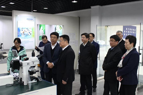 在国家重点研发计划重点专项“高分辨荧光显微成像仪”样机实验室里,毛磊介绍了公司重大专项的阶段性研究成果,和公司主导的ISO9345国际标准(中国人首次主导显微镜方面国际标准)在今年3月份成功发布。郑书记也特别关注公司能研发制造出国际水平的显微物镜,希望公司要不断提升核心竞争力,不断研发出更先进、更具市场竞争力的产品。