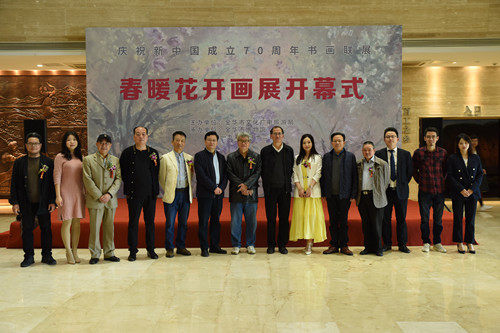 4月12日,由浙江省文化产业学会、金华市文化广电旅游局主办的“春暖花开·庆祝新中国成立70周年书画联展”在金华市博物馆开幕。省文联原党组书记处书记、省文化产业学会会长蒋建东,金华市人大常委会副主任王丁路、市文化广电旅游局局长方宪文、市文联主席楼冰等领导出席开幕式。市侨商会文学顾问胡毅萍等青年画家的美术作品,以及受邀书画收藏精品共80余幅参加联展。市侨商会副会长唐勇、童正庭、盛桢,秘书长成盖平及部分理事与各界人士共100余人参加开幕式并观展。
