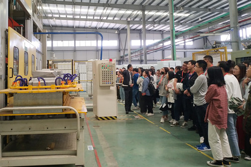 5月7日,浙江工商大学杭州商学院80余名学生在李春友老师的带领下,到华日现代化的冰箱制冷基地参观学习。华日公司副总经理孙敏华接待了学生们,并带领他们到生产现场观摩学习,围绕整个生产制造工序,实地讲解了冰箱的生产制造、制作工艺和相关的装备技术。