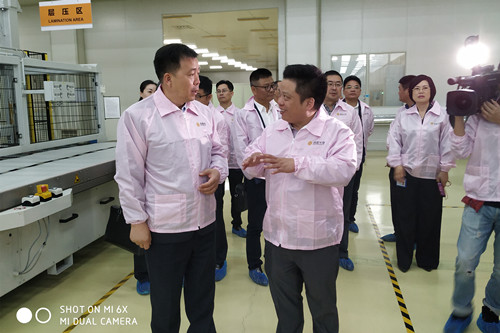 张振丰一行参观了尚越光电产品展示厅并深入车间了解生产情况,一边认真听取公司核心技术及产品应用领域等方面的介绍,一边询问了非常专业的行业问题,公司管理层对相关提问做了一一解答。调研组一行对尚越光电的科技实力及分布式光伏、分布式储能、分布式应用发展方向表示充分肯定。
