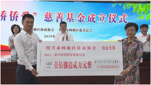 5月16日,由绍兴市柯桥区侨商会会长吴建栋、常务副会长蒋振东、金君、包海英、陶晓东、陈利峰以及副会长周洋等7人发起并成立的“柯桥侨爱”慈善基金举行成立仪式。基金首批募集资金182万元,主要用于暖侨关爱、急难救助、职业教育和之江学院教育立志项目等。