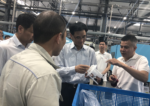 调研过程中,熊建平部长一行参观了众恒汽车部件公司的生产线与生产车间,与蔡国伟董事长进行面对面的交谈,认真听取了关于企业发展历程和未来规划等情况的介绍,并就企业的生产用地、经营、销售以及发展过程中存在的困难和问题进行深入的了解与探讨。