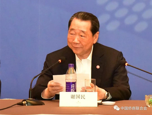 中国侨商投资企业协会会长谢国民、中国侨商联合会会长许荣茂分别致辞。
