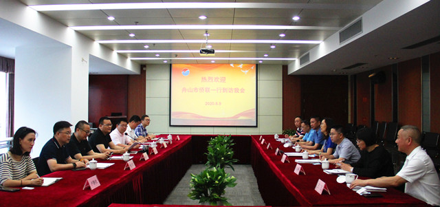 在宁波市侨商会,陶性于向宁波的侨商企业推介舟山新区营商环境、产业特点,探讨两地合作发展,诚邀侨商企业来舟山考察,参与“2020年海外侨商走进自贸区”活动。甬舟两地侨商会负责人还就商会组织架构、会员发展、侨商大厦建设等方面进行了深入交流。