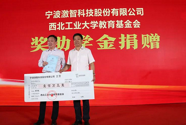 在8月27日举行的西北工业大学宁波研究院开园活动上,侨企宁波激智科技股份有限公司向西北工业大学教育基金会捐赠100万元人民币,设立“激智科技奖学金”和“激智科技社会实践奖”,奖励在宁波学习品学兼优的全日制本科生、研究生,家庭经济困难的学生等。