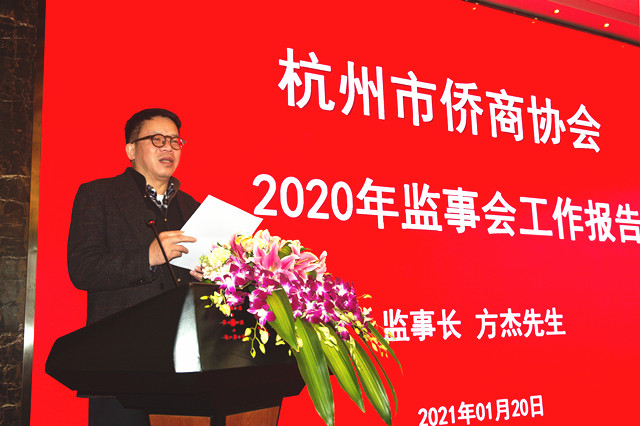 市侨商会监事长方杰作监事会工作报告。他指出,多元化、精细化、常态化是去年商会开展工作的主流。面对严峻复杂的国际形势、艰巨繁重的国内改革发展稳定任务,特别是新冠肺炎疫情的严重冲击,杭州侨商积极与祖国共克时艰,展现出无私奉献的精神,体现了海内外中华儿女对祖国的赤诚之心。