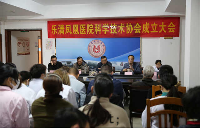 近日,乐清凤凰医院科学技术协会成立大会在医院二楼会议室举行,市科协副主席刘志刚莅临大会祝贺并讲话。凤凰医院董事长、乐清市侨商会副会长陈新,书记郑国堂,院长张静,副院长徐海锋等人出席大会。大会由郑国堂主持。