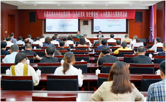 最近,永嘉县委统战部、县侨联、县民宗局、县工商联联合开展海内外党史宣讲暨“五月扬清风 知史锤党性”510思廉日主题教育活动。统战系统机关干部、侨界嘉宾、海外党史宣讲团代表、县侨联九届委员等80余人参加学习。会议由县委统战部副部长、县侨办主任、县侨联主席王萍萍主持。县侨商会高级顾问金麟泽、会长林正益、副会长夏海潮等侨界代表作党史学习交流分享。