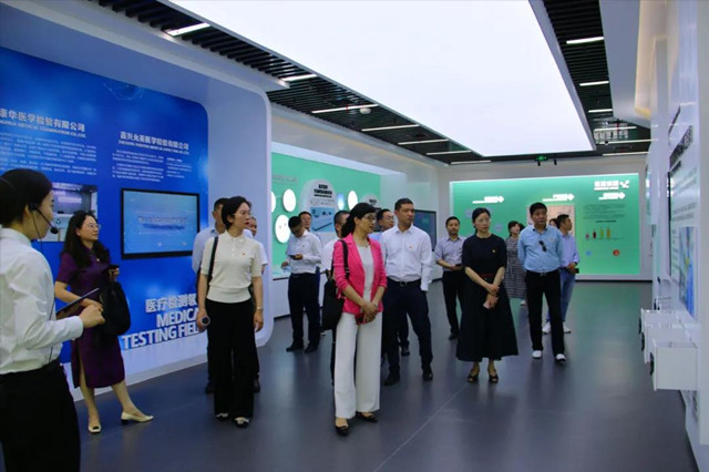 考察团一行参观了嘉兴科技城展示馆·智立方海归人才科技创新成果展,实地了解海归创业发展情况,对馆内展示的高科技人才项目产业——立体影视产业、精准医疗产业、智能制造产业、互联网+VR服务的产业集群等赞叹不已。考察团还参观了“红船服务”总联盟,听取海外人才引进、联盟服务海归创业创新的情况介绍。考察团一行认为嘉兴服务新侨工作有载体、有创新,值得借鉴。两地侨联还就进一步加强交流合作,发挥侨务资源优势,助力经济社会发展等内容进行了探讨。