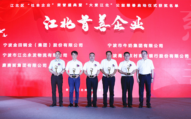 9月9日,由宁波市江北区委、区政府主办的2021年全区“社会企业”荣誉盛典暨“大爱江北”慈善公益活动启动仪式在远洲大酒店举行。宁波市侨商会会长单位---康赛妮集团有限公司荣获江北区“首善企业”荣誉称号。