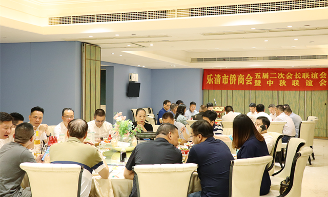 最近,乐清市侨商会在新金龙大酒店举办了五届二次会长联谊会暨“2021年中秋联谊会”。市委常委、统战部部长赵明皓,市人大常委会副主任范晓东,市政协副主席林月和,市人大常委会科教文卫体委员会主任叶晓权,市政协港澳台侨与外事委员会主任倪荣平,市府办副主任朱小龙,市统战部常务副部长鲍式谦,市委统战部副部长周胜海、周越女等涉侨部门领导和嘉宾以及会员企业负责人共70多人参加。