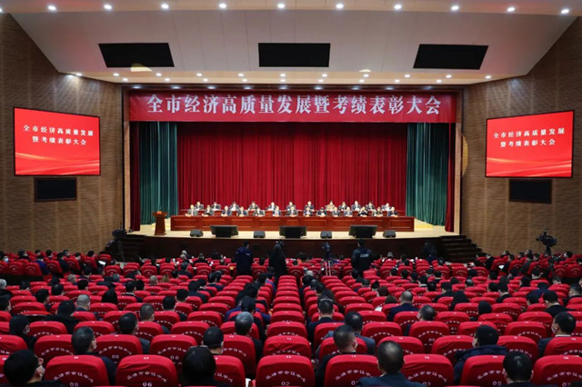 2月9日,乐清市委市政府召开全市经济高质量发展暨考绩表彰大会,市委副书记、代市长戴旭强主持会议。