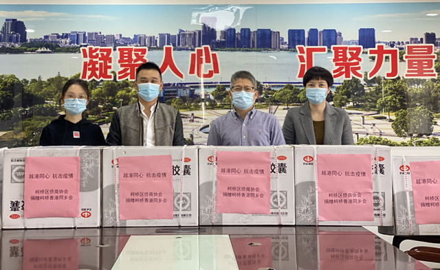 越港连心,抗击疫情。日前,一场简单而温馨的捐赠仪式在柯桥区委统战部举行——绍兴市柯桥区侨商会通过柯桥区慈善总会侨爱基金向旅港同胞、侨胞捐赠抗疫药品莲花清瘟胶囊2400盒,合计人民币3万余元。