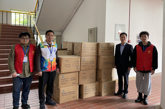 宁波市侨商会监事长傅旭敏向疫情封控区——宁波万里学院捐赠5万个医用口罩。