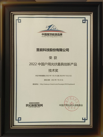 7月23日,“2022中国屋顶能源优秀品牌奖”颁奖仪式在济南市高新国际会展中心举行。浙江省侨商会科创委委员单位昱能科技股份有限公司凭借其在户用光伏领域的技术实力和创新能力斩获“2022中国户用光伏最具创新产品技术奖”。