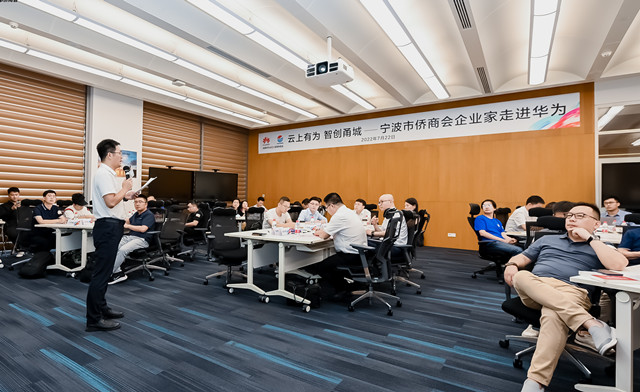 7月22日,浙江省侨商会副会长、宁波市侨商会会长薛惊理带队走进华为全球培训中心开展交流活动,市侨商会名誉会长兼执行会长朱海宏,常务副会长沙力、傅炵,副会长徐鉴之、徐继钢、张益波等20余人参加。